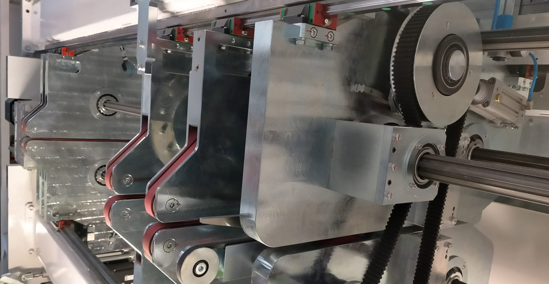 5 pares de carros (superior e inferior) con eje central fijo sin los típicos tornillos de fijación. Utiliza también la tecnología de los mini-motores y cada carro está motorizado de forma independiente.